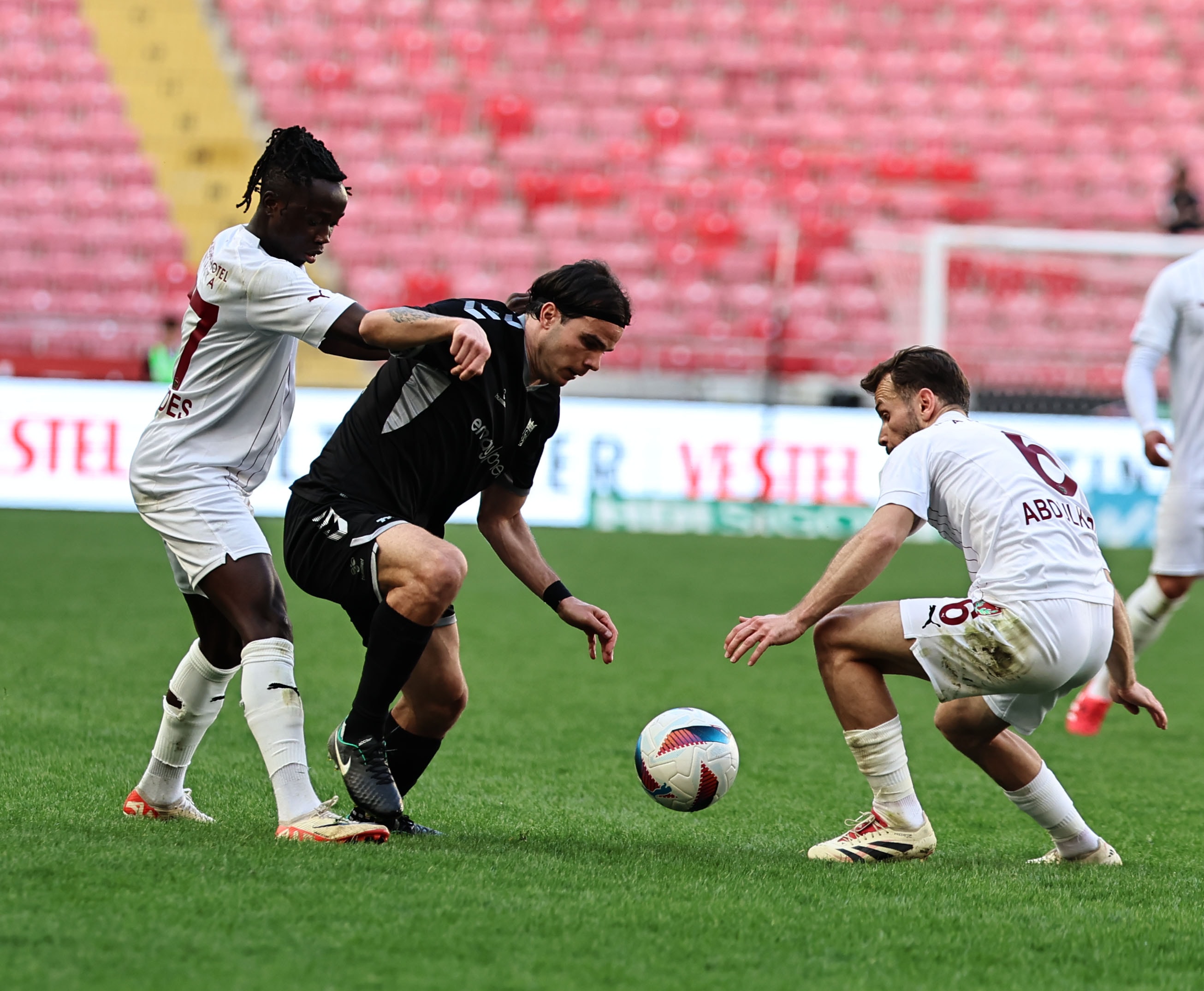 Hatayspor, Guy-Marcelin Kilama'nın 65. dakikada attığı golle 3-2 öne geçti. Hatayspor, Francisco Calvo'nun 78. dakikada kırmızı kart görmesinin ardından mücadeleyi 10 kişi tamamladı.