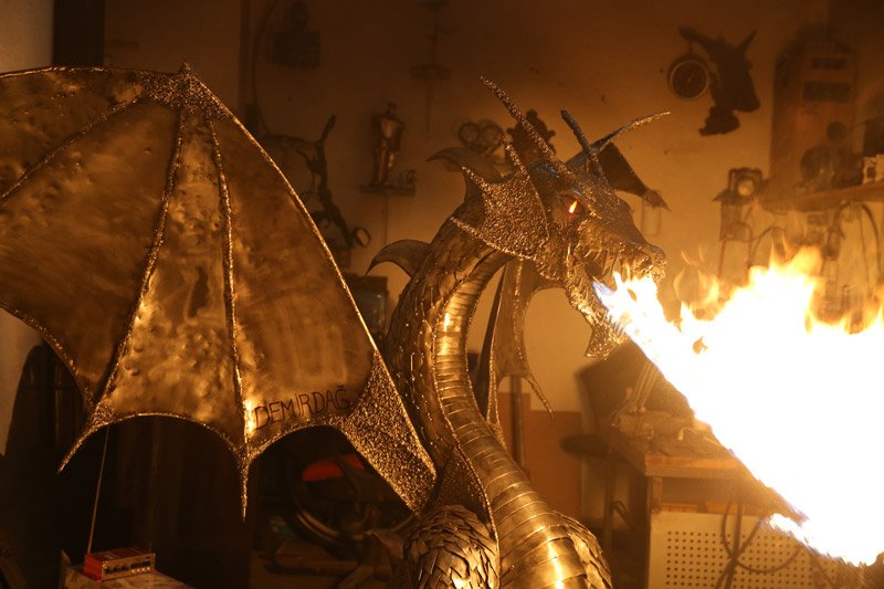Metal sanatında farklı bir tasarım yapmak istediğini anlatan Doğan, "Çalışan mekanik aksamları olan, kanatlarını çalıştıran bir ejderha yapmayı düşündüm." dedi.