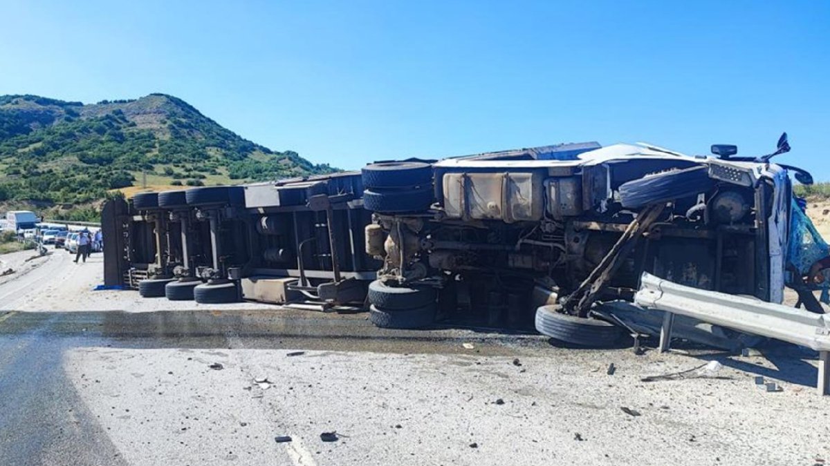Sivas'ta E.Ç. (45) yönetimindeki 60 KV 883 plakalı TIR, Sivas-Ankara kara yolunun Cumhuriyet köyü yakınlarında devrildi.