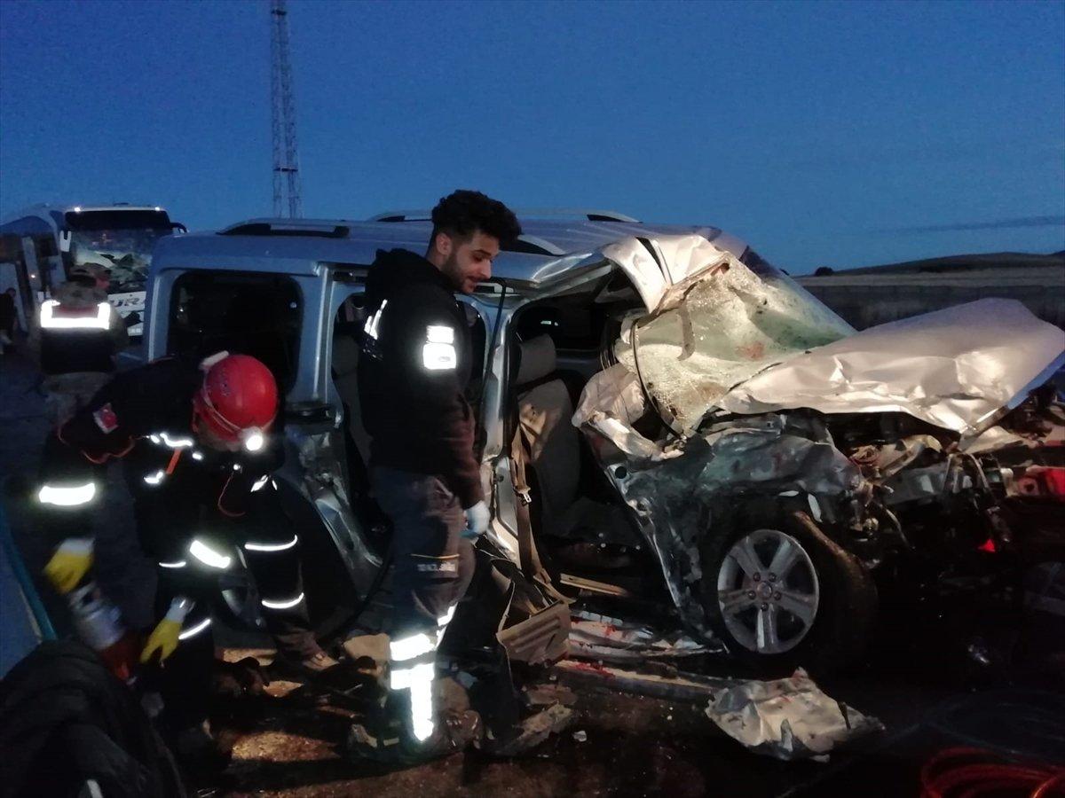Sivas'ın Kangal ilçesinde bir yolcu otobüsünün hafif ticari araçla çarpışması sonucu ilk belirlemelere göre 2 kişi öldü, 4 kişi yaralandı.