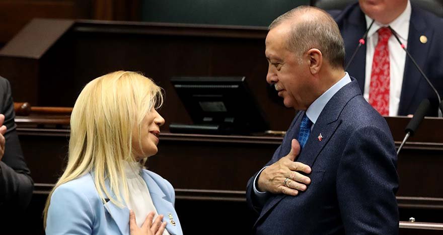 AKP ROZETİNİ ERDOĞAN’DAN ALDICumhurbaşkanı Erdoğan, AKP’ye geçen Antalya Milletvekili Tuba Vural Çokal’a parti rozeti taktı.