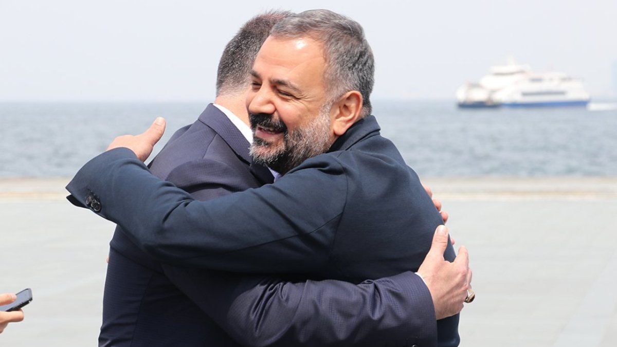 İki İl Başkanı açıklamaların ardından birbirlerine sarılarak dostluk görüntüsü verdi. (ANKA)