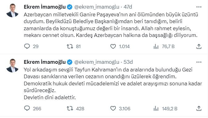 Diğer siyasilerin paylaştığı mesajlar da şu şekilde:
