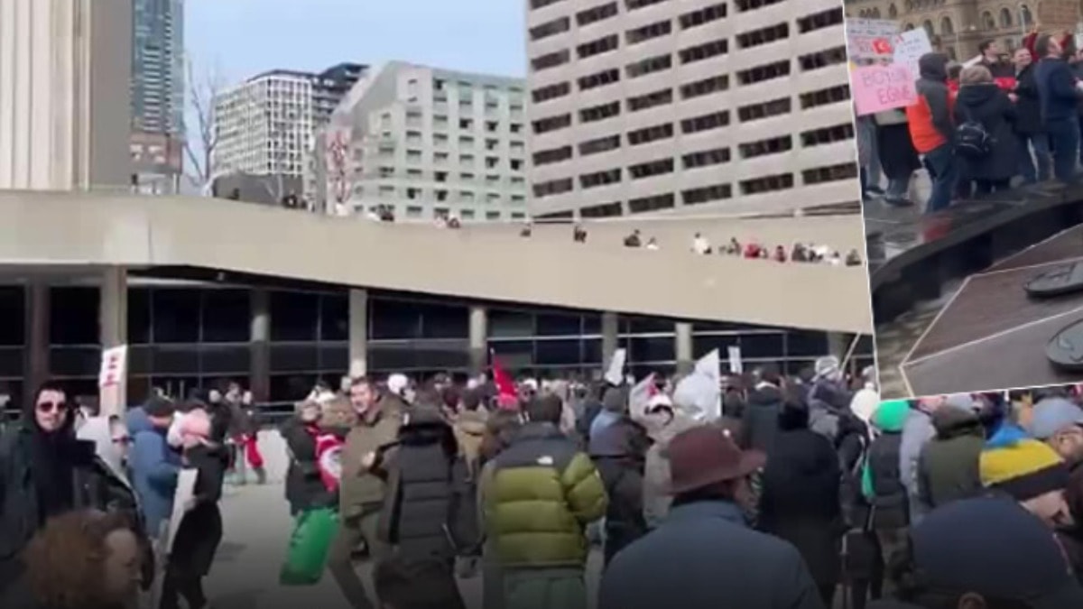 Kanada'da Ekrem İmamoğlu'nun tutuklanmasına karşı çıkan Türkler, büyükelçilik önünde protesto düzenledi.