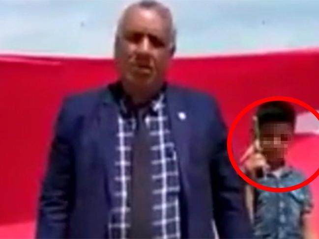“Halaf Kete” adlı facebook hesabından paylaşılan videoda Türk bayrağını elinde tutan kalaşnikoflu kişiler ve kesilen iki koyun yer alıyor. Elinde bıçak olan eski belediye başkan yardımcısı Halil Kete’nin, yanında tabanca tutan bir çocuğun da poz verdiği görülüyor.