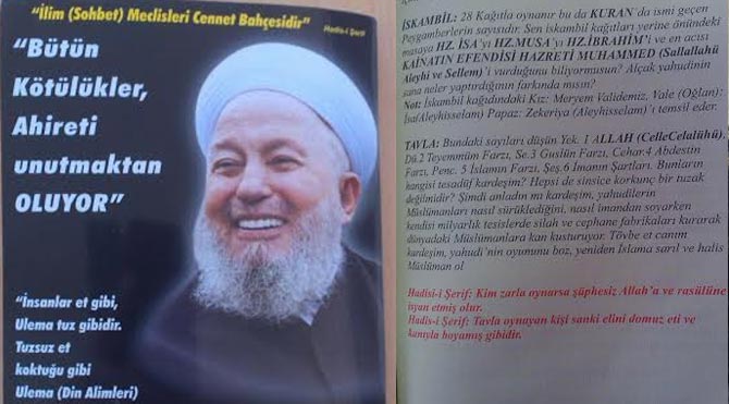 Çocuklara “Kadınların şoförlük yapması, sokakta konuşması caiz değildir, Anneler Günü, kafirlerin işidir, Yılbaşından uzak durun, Tavla oynamayın, Kadınlar erkeklerin olduğu yerde sekreterlik yapmamalı, Sakalsız erkek, çarşafsız kadın olmaz, Yüksek topuklu ayakkabı giyen kopuktur” gibi akıl almaz öğütler veriliyor.