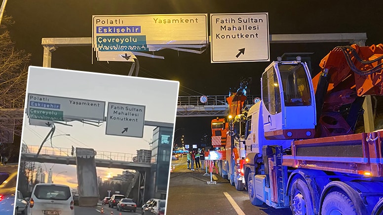Bulvarda seyir halindeki hafriyat kamyonunun, sürücüsü tarafından açık unutulan damperi, yolda bulunan yön levhasına ve üst geçide çarptı.