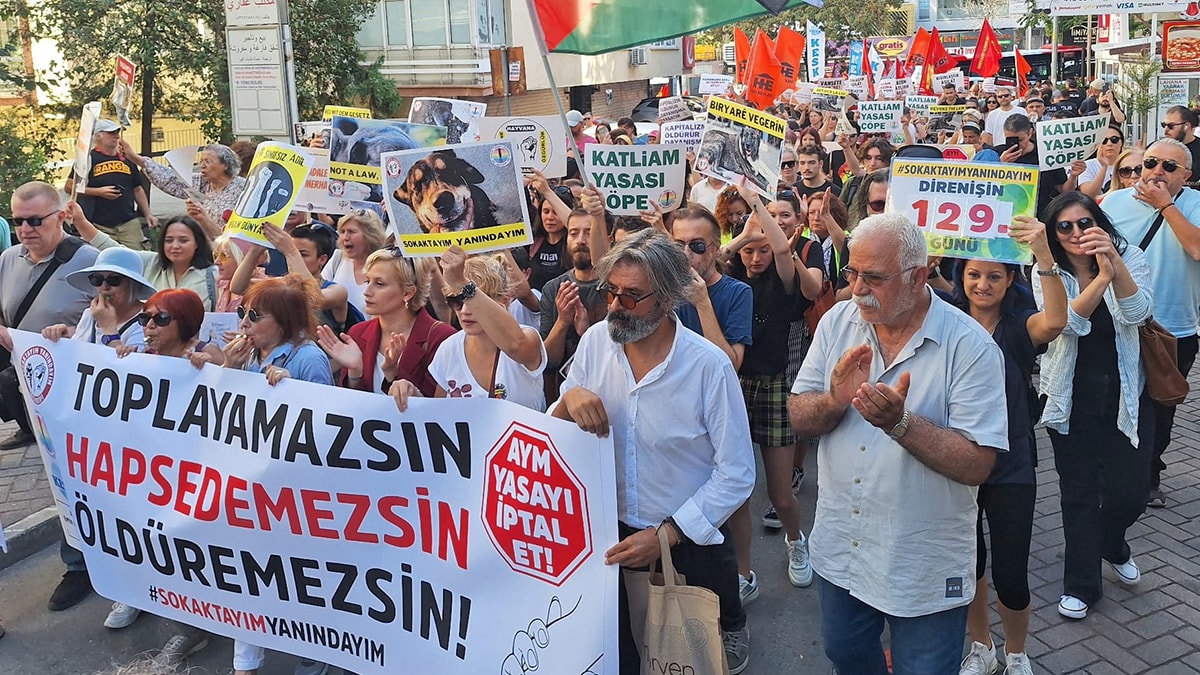Öte yanan İzmir'de hayvan hakları savunucuları ve 48 kuruluş, imzaladıkları deklarasyon ile sokak hayvanlarına yönelik yasaya tepki göstererek, yürüyüş ve miting düzenledi.