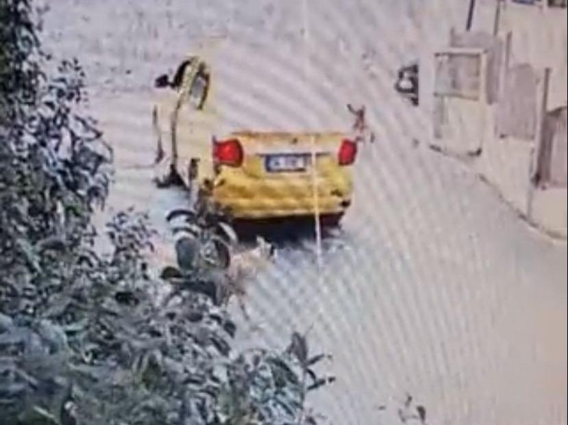 Otomobilin köpeğe çarptığı o anlar ise bir iş yerinin güvenlik kamerasına saniye saniye yansıdı. Güvenlik kamerasına yansıyan görüntülerde, ara sokaktan ana caddeye ilerleyen bir taksici, sokak üzerinde bulunan köpeğe çarpıp köpeğin can çekiştiği anları bir süre izledikten sonra hızla olay yerinden uzaklaşıyor.