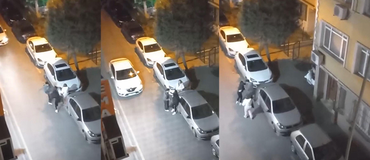 Araya girmeye çalışan kız arkadaşının arkadaşına da tepki gösteren erkek 'Karışamazsın sen' diye bağırdı. Kadın 'Çantamı ver' diyerek bağırmaya devam ederken, bu kez erkek tekme ve tokat atarak kadını darbetti. Olay anı sokakta bulunan bir kişinin cep telefonu kamerasına yansıdı.