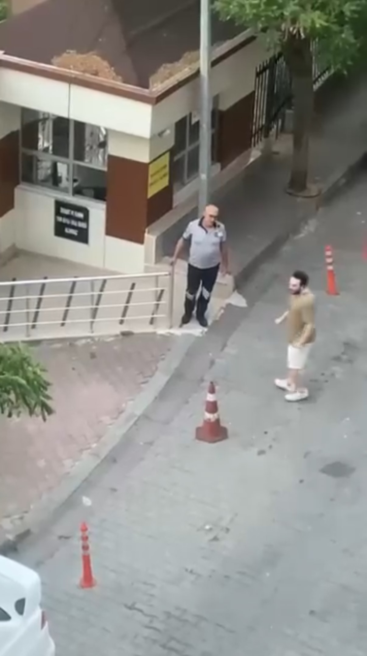Saldırgan bir süre sonra bölgeye geri döndü ve bu kez bir sitenin özel güvenlik görevlisiyle tartıştı. Güvenlik görevlisinin kendisini sakinleştirme çabalarına karşılık bağırarak karşılık veren şüpheli, görevliyi iterek uzaklaştı.