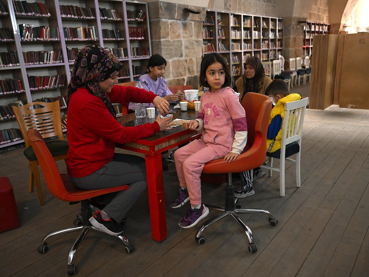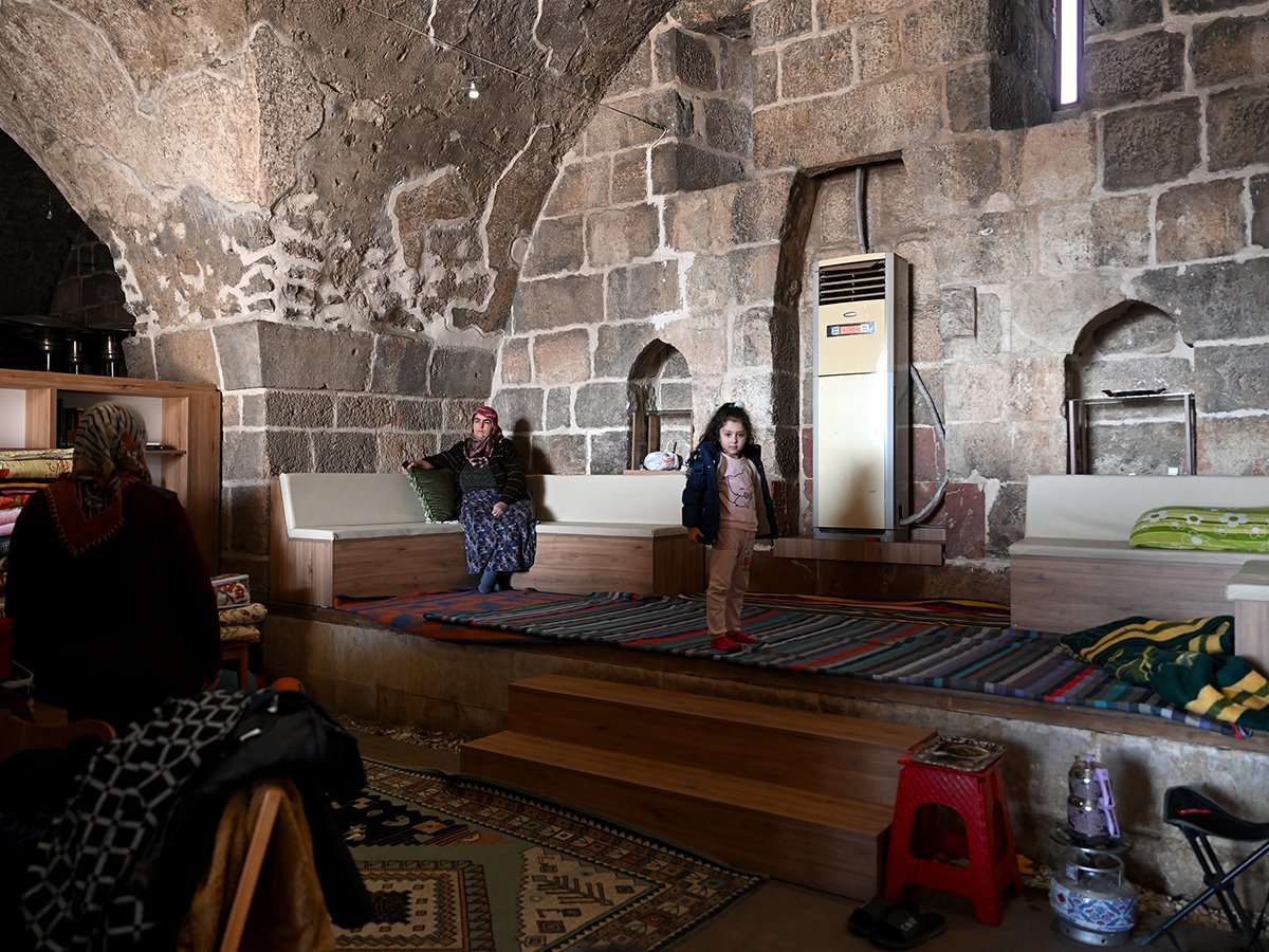 Türkan Dede çocuklarıyla külliyenin içindeki kütüphanede barındıklarını anlattı. Dede, "10 gündür buradayız ve alışmaya çalışıyoruz. Birbirimize destek oluyoruz. Daha önce turlar geliyordu buraya, şu an depremzedeler için açıldı. 24 saat klimalar, ısıtıcılar çalışıyor" diye konuştu.