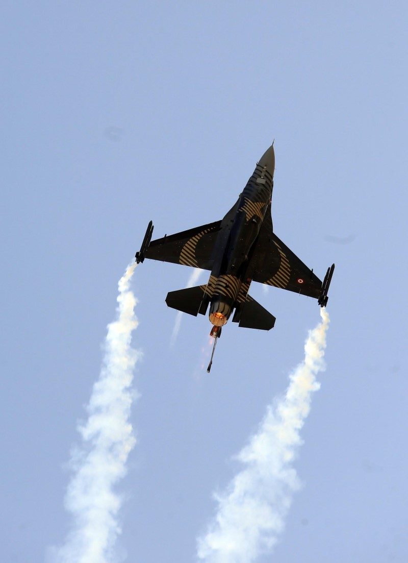 Foto: DHA - SOLOTÜRK 5'inci yaş gününde şehitler için uçtuKuruluş yıllarından bugüne yüce milletimizin hiç eksilmeyen desteği ile bölgemizde ve dünyada barış ve istikrarın korunmasında etkin, modern ve güçlü bir hava kuvvetleri haline geldiğimizi özellikle son dönemlerde icra ettiğimiz teröristle mücadele harekatı ve koalisyon harekatındaki başarılarımızı yakinen müşaade ediyorsunuz. Bu başarıyı 'İstikbal Göklerdedir' fikrini dimamıza yerleştiren havacılıkta da çağlar ötesi vizyona sahip olan Ulu önderimiz Mustafa Kemal Atatürk'e destek ve sevgilerini her an yüreğimizde hissettiğimiz fedakar milletimize, her biri yüce milletimizin, şefkatli havacı personelimize, kahraman gazilerimize ve göklerden gönüllere intikal etmiş aziz şehitlerimize borçluyuz.