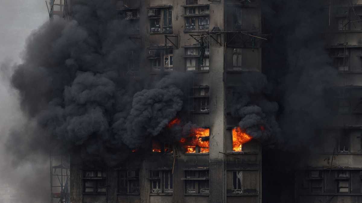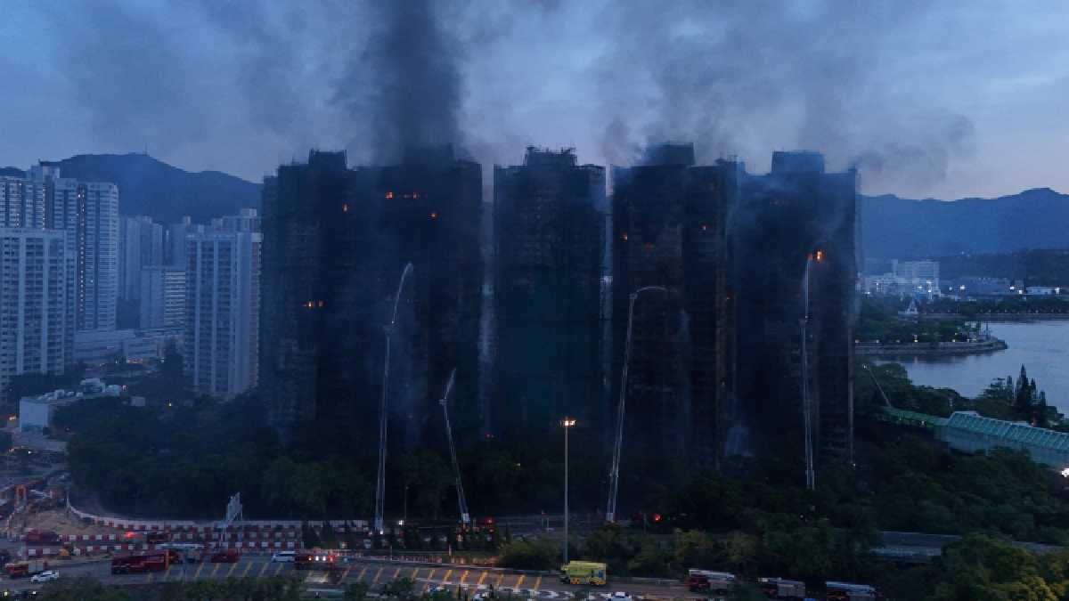 Olay yerinden gelen görüntüler 32 katlı en az iki kulenin hala alev aldığını ve inşaat ağıyla kaplı bambu iskelelerden yoğun duman yükseldiğini gösterdi.