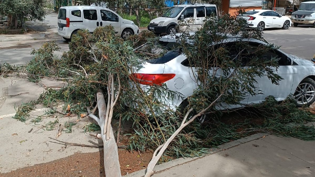 Saatteki hızı 70 kilometreye ulaşan fırtınada araçların üzerine devrilen ağaç ve aydınlatma direkleri maddi hasara neden oldu.
