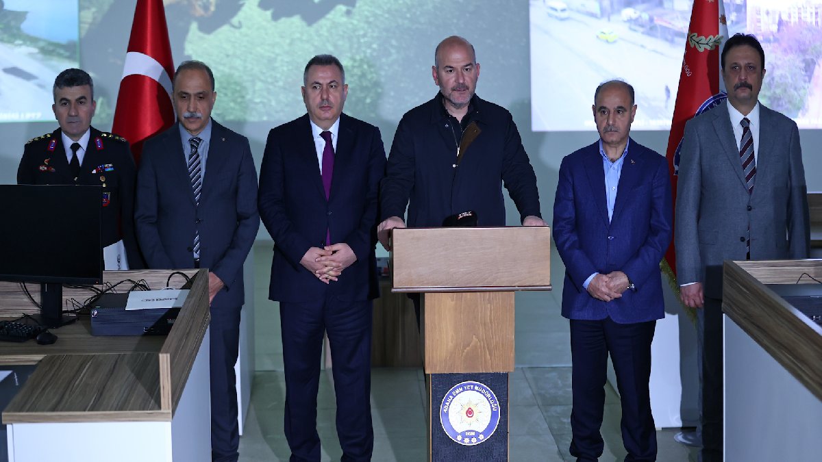 Bakan Soylu'ya, açıklaması sırasında Vali Süleyman Elban, Emniyet Genel Müdürü Mehmet Aktaş, İl Emniyet Müdürü Doğan İnci ve İl Jandarma Komutanı Albay Bilgihan Yeşilyurt eşlik etti.
