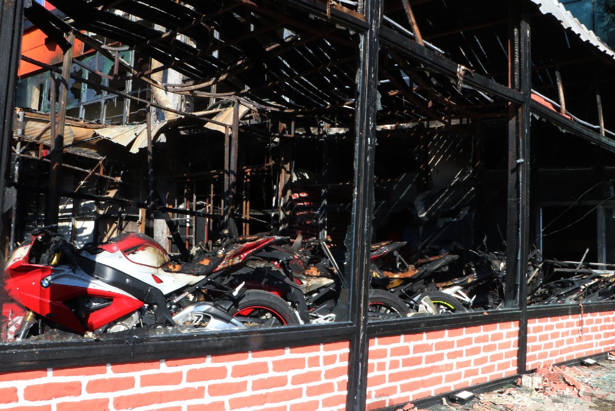 Motosiklet kiralama dükkanındaki onlarca motosikletin yandığı ve iş yeri sahibinin 6 milyon lirayı aşkın zarara uğradığı öğrenildi. Ekipler, yangının kesin çıkış nedenini belirlemek için çalışmalarını sürdürüyor. (DHA)