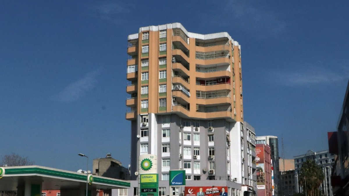 Kahramanmaraş merkezli depremlerin vurduğu Adana'da, Seyhan ilçesi Hurmalı Mahallesi Bakımyurdu Caddesi'nde üst kısmı sarı, alt kısmı gri binaya ait görüntüler, sosyal medyadan paylaşıldı.