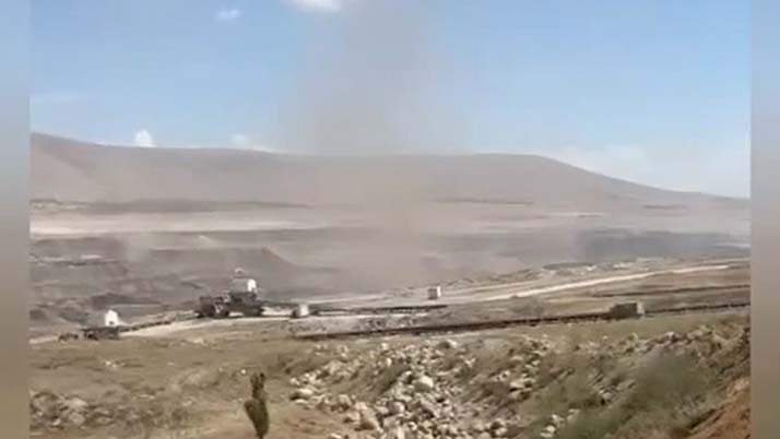 Ekiplerin bölgedeki incelemesi devam ederken, göçük anı cep telefonu kamerasıyla kaydedildi. Görüntülerde iş makinelerinin toprak altında kalması ve havaya yükselen toz bulutu yer aldı.