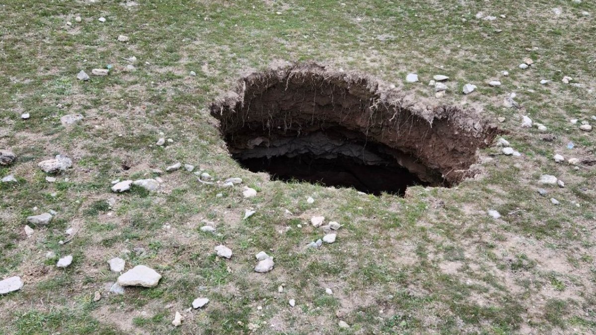 Aksaray'ın Sultanhanı ilçesinde, boş arazide 5 metre çapında ve 10 metre derinliğinde obruk oluştu.