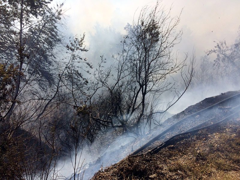 Bölgeyi yoğun duman kaplarken, alevlerin yerleşim yerlerine sıçramaması için yoğun çaba sarf ediliyor.