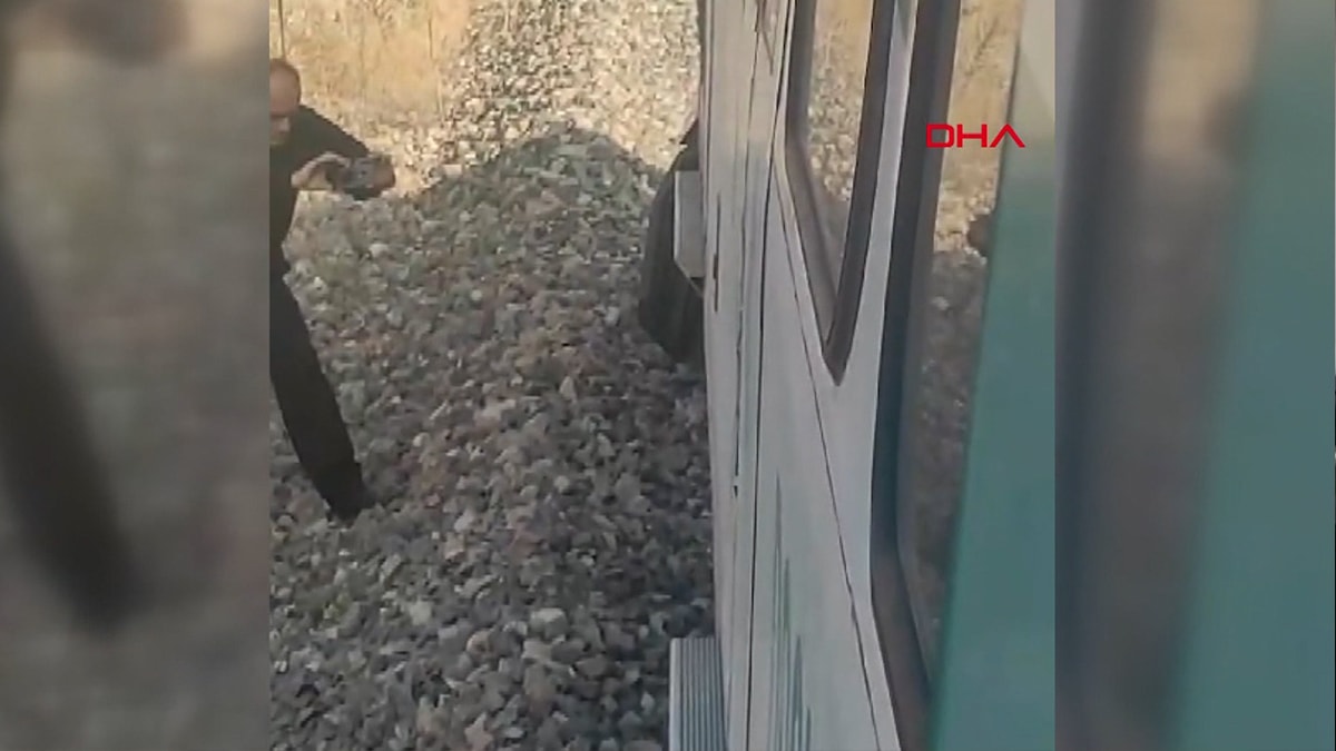 Ankara - Polatlı arasında sefer yapan Başkentray'a ait yolcu treni, raya düşen kayaya çarptı.