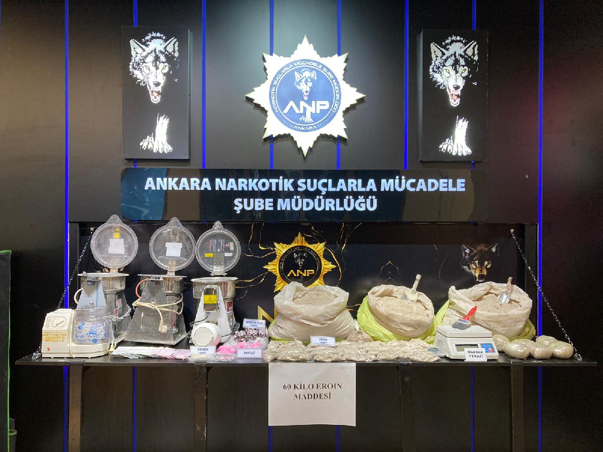 Operasyonda 61 kilo 658 gram eroin, 1 kilo 466 gram esrar, 3 adet sentetik ecza maddesi, 2 kilo 73 gram metamfetamin, 20 adet kenevir tohumu, 68 gram kokain, 10 gram bonzai, 1 gram amfetamin, 2 adet ecstasy, 42 adet pipe, 134 kilo tütün, 861 adet iki yüzlü makaron, 6 bin 800 adet 20'şerli paketler halinde tütün dolu makaron, 1 adet tütün sarma makinesi, 1 adet tüfek ve 2 adet hassas terazi ile uyuşturucu üretimi için özel olarak hazırlanarak ışıklandırılmış imalat çadırı ele geçirildi. Şüphelilerin emniyetteki işlemleri sürüyor. (DHA)