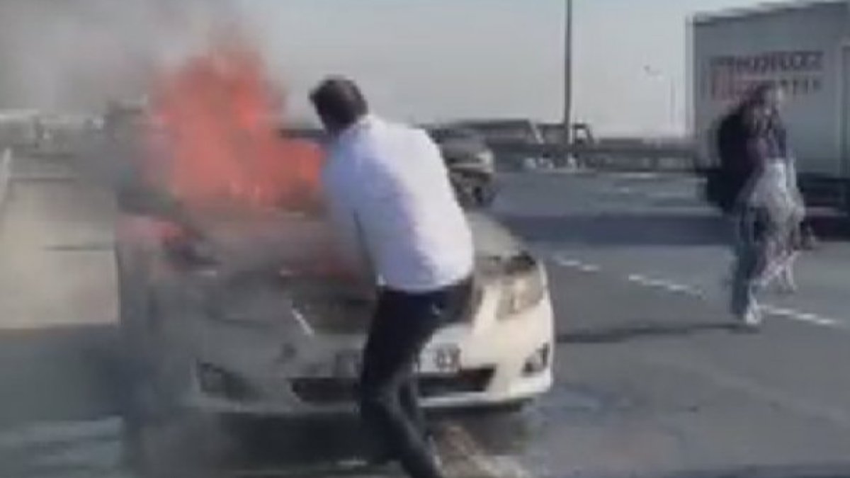 Arnavutköy'de seyir halindeki otomobilde çıkan yangını, aynı anlarda aracıyla yoldan geçen itfaiye eri Ferhat Koç söndürdü. Ferhat Koç'un izin gününde olmasına rağmen yangına müdahale ettiği öğrenilirken, o anları çevredekiler cep telefonu kamerasıyla kaydetti.