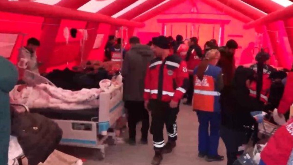 "10 ilimizde 77 sahra hastanesi kurduk. Acil sağlık hizmeti verilen bu hastanelerin bir kısmında cerrahi operasyonlar da yapabiliyoruz. Sağlık durumu riskli depremzedelerimiz buralarda yapılan ilk müdahalenin ardından helikopterlerle bölgedeki hastanelere sevk ediliyor." (DHA)