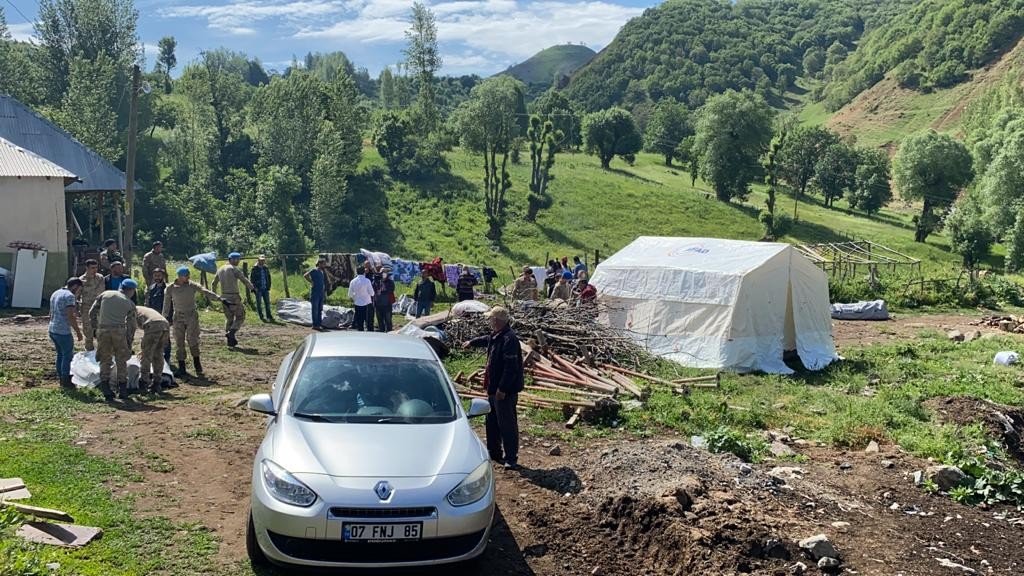 Depremde ağır hasar alan köyde çadırlar kuruluyor. FOTO: İHABAZI KÖYLERDE HASARA YOL AÇTI