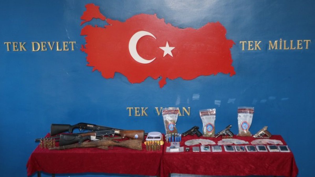 Adreslerinde yapılan aramalarda 74 kilo 25 gram esrar, 6 bin 182 kök Hint keneviri, 5 kilo 8 gram kenevir tohumu, suçtan elde edildiği değerlendirilen 269 bin TL, 6 ruhsatsız av tüfeği, 4 ruhsatsız tabanca, 3 hassas terazi, 1 menşeyi tespit edilemeyen piyade tüfeği, çeşitli çaplarda 111 fişek, 14 cep telefonu, 17 sim kart, 6 hafıza kartı ele geçirildi.