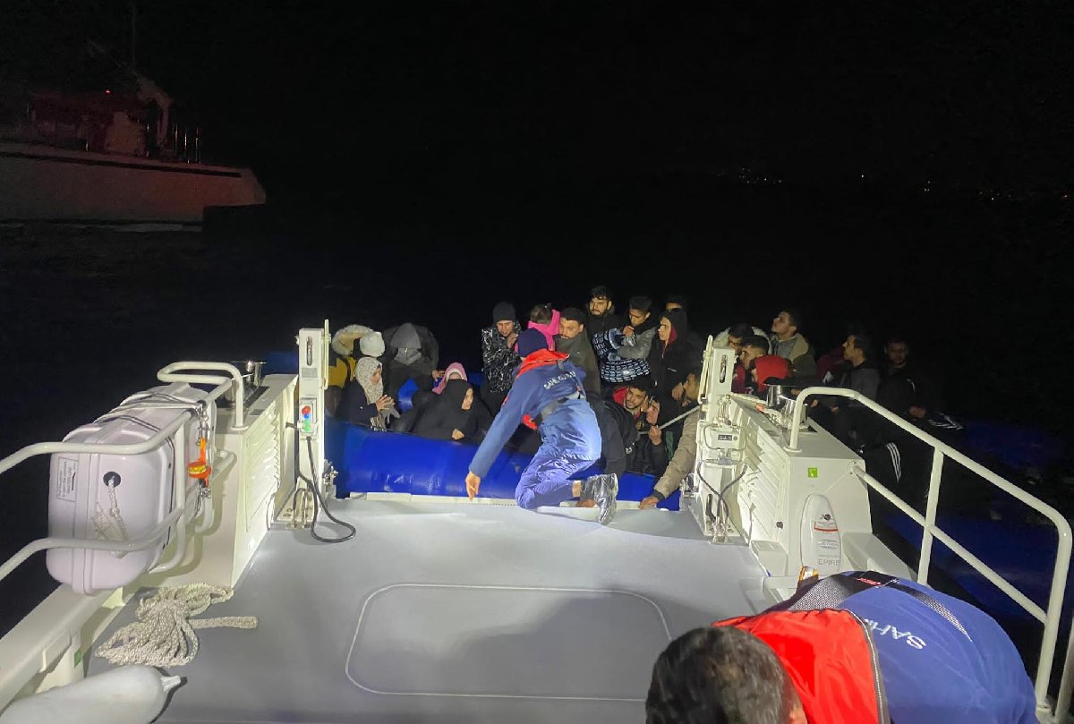 Muğla'nın Bodrum ilçesi açıklarında Sahil Güvenlik Komutanlığı ekiplerince, lastik botta 37 kaçak göçmen yakalandı.