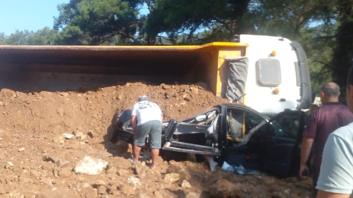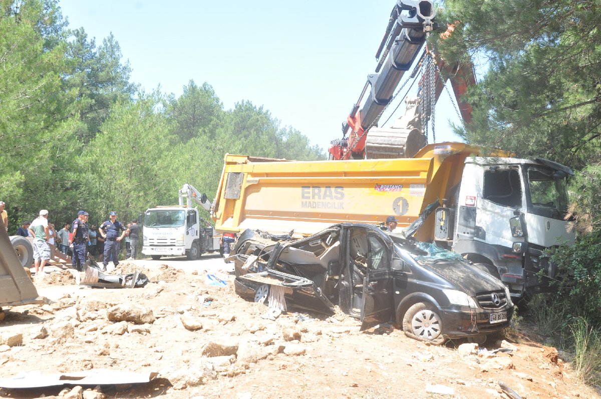 Torba istikametine seyreden Fikret Çevik’in kullandığı hafriyat yüklü kamyon, şoförün direksiyon hakimiyetini kaybetmesi sonucu, aynı yönde giden Halil İbrahim Akbal’ın kullandığı VIP minibüsün üzerine devrildi.