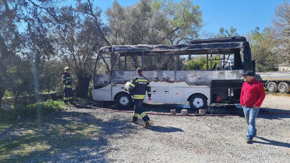 Kendisini servisten atan sürücü, itfaiyeye bildirdi. İhbarla bölgeye itfaiye ekipleri, sevk edildi. Alevler, otoparkın çevresindeki ağaçlara da sıçradı. Ekipler, 1 saatlik çalışma sonunda yangını söndürdü. Bu anlar, cep telefonu kamerasıyla görüntülenirken, okul servisi, kullanılamaz hale geldi. (DHA)