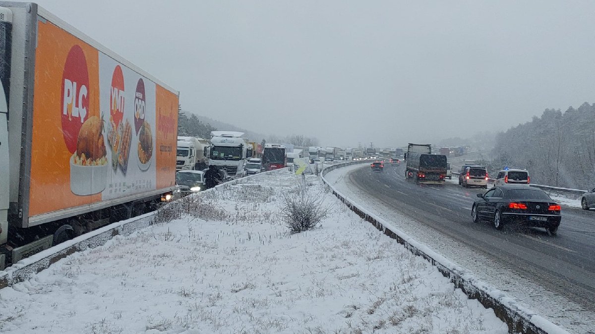 Kaza nedeniyle ulaşıma kapatılan yolun İstanbul istikametinde uzun araç kuyrukları oluştu.