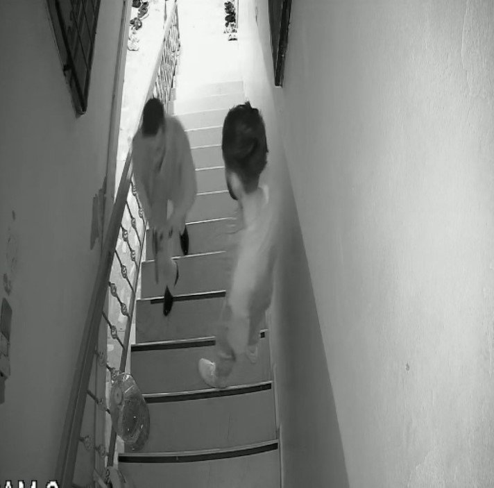 Daha sonra 15 dakika geçmeden büyük torunum gelip zile bastı. Kendisinden korktuğumuz için her yerde kamera var ve büyük bir ekrandan evden izliyoruz. Kameradan ayaklarını gördük.