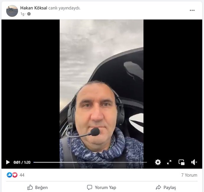 Yeni lisansını alan Köksal'ın, kazadan 22 saat önce sosyal medya hesabından, düşen uçağın içinden canlı yayın yaptığı ortaya çıktı.
