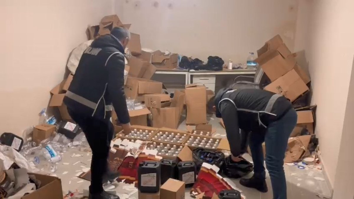 Yapılan aramalarda, 3 bin litre etil alkol, 2 bin 698 içki kiti, 400 şişe sahte içki, bin 700 içki etiketi, bin içki kutusu, bin 500 içki şişesi kapağı, 150 boş içki şişesi, 290 paket bandrolsüz sigara, 20 bin 580 doldurulmuş makaron ile 11 elektronik sigara ele geçirildi. Operasyon kapsamında M.T., E.Ç., A.Ç., O.D. ve M.K. gözaltına alındı.