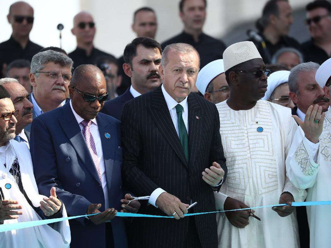 Cuma namazı sonrası caminin resmi açılış törenine geçildi. Törene, Arnavutluk Cumhurbaşkanı İlir Meta, Gine Cumhurbaşkanı Alpha Conde, Senegal Cumhurbaşkanı Macky Sall, Filistin Başbakanı Muhammed İbrahim İştiyye, Afganistan İcra Heyeti Başkanı Abdullah Abdullah, Azerbaycan Milli Meclis Başkanı Oktay Esadov, Bosna Hersek Devlet Başkanlığı Konseyi Üyesi Şefik Caferoviç, Bosna Hersek Halklar Meclisi Başkanı Bakir İzetbegoviç, Libya Meclis Başkanı Halid Elmeshri, Tunus El Nahda Hareketi Lideri Raşid el Gannuşi katılıyor.