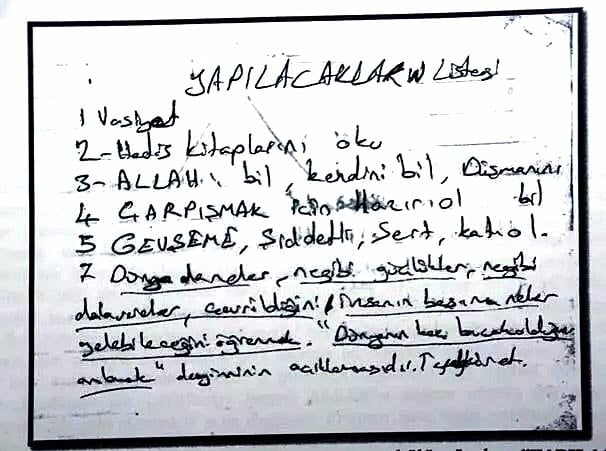 Radikal İslamcı, tekfirci fikirlerin yayılması için bir araya gelen sanıkların Türkiye’de yoğun bir propaganda ve örgütlenme çalışmaları içine girdikleri vurgulandı. Terör örgütünün tüm üyelerinden el yazmalı vasiyetname aldığının, teröristlerin yapmaları gerekenleri teker teker örgüte raporladıklarının da ele geçen dokümanlarda yer aldığına dikkat çekildi.