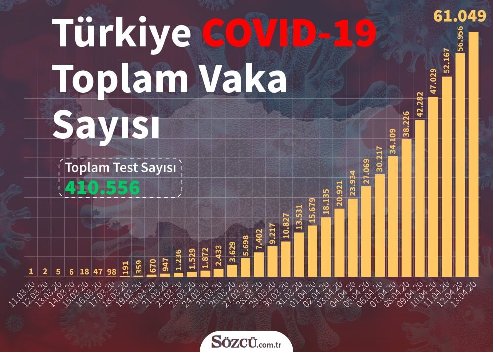 Güncel verilerle birlikte Türkiye genelindeki toplam vaka sayısı 61 bin 49'a çıkarken toplam vefat sayısı da 1296'ya çıkmış oldu.