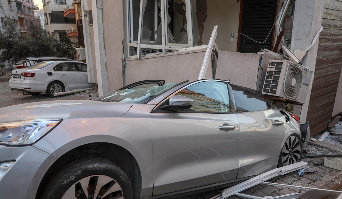 Yan yatmak üzere olan binalar ile zemin arasında sıkışan araçlar, hasar gören binaların yıkılmasını önledi. Binaların altında sıkışan araçlar, ilginç görüntü oluşturdu.