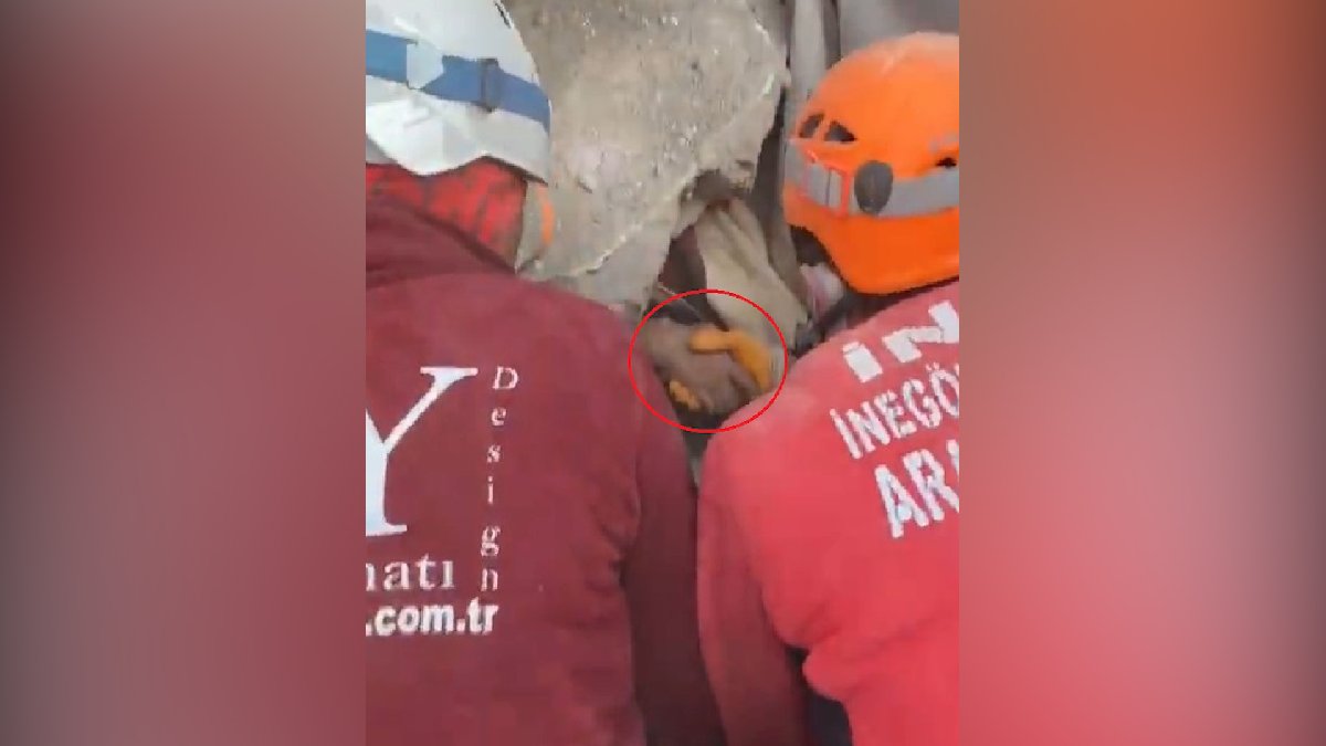Ekipler, 1 saat süren titiz çalışmanın ardından depremin 10uncu gününde, bugün saat 10.30 sıralarında Melike İmamoğlu'nun enkazdan sağ olarak çıkarmayı başardı. O anlar ekip üyeleri tarafından anbean cep telefonu kamerasıyla görüntülendi. Görüntülerde, ekip üyelerinden birinin Melike'nin enkazın altından uzanan elini bir an olsun bırakmadığı görüldü.