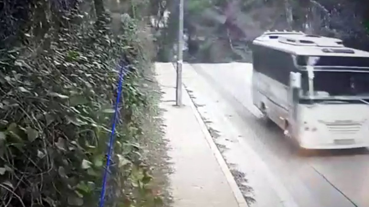 Bu sırada karşı şeritte ilerleyen bir başka servis otobüsünün şoförü, ani fren yapıp, ağaca 1 metre kala durdu. Araç trafiğine kapanan yolda yaklaşık 1 saatlik çalışmanın ardından devrilen ağaç kaldırıldı.