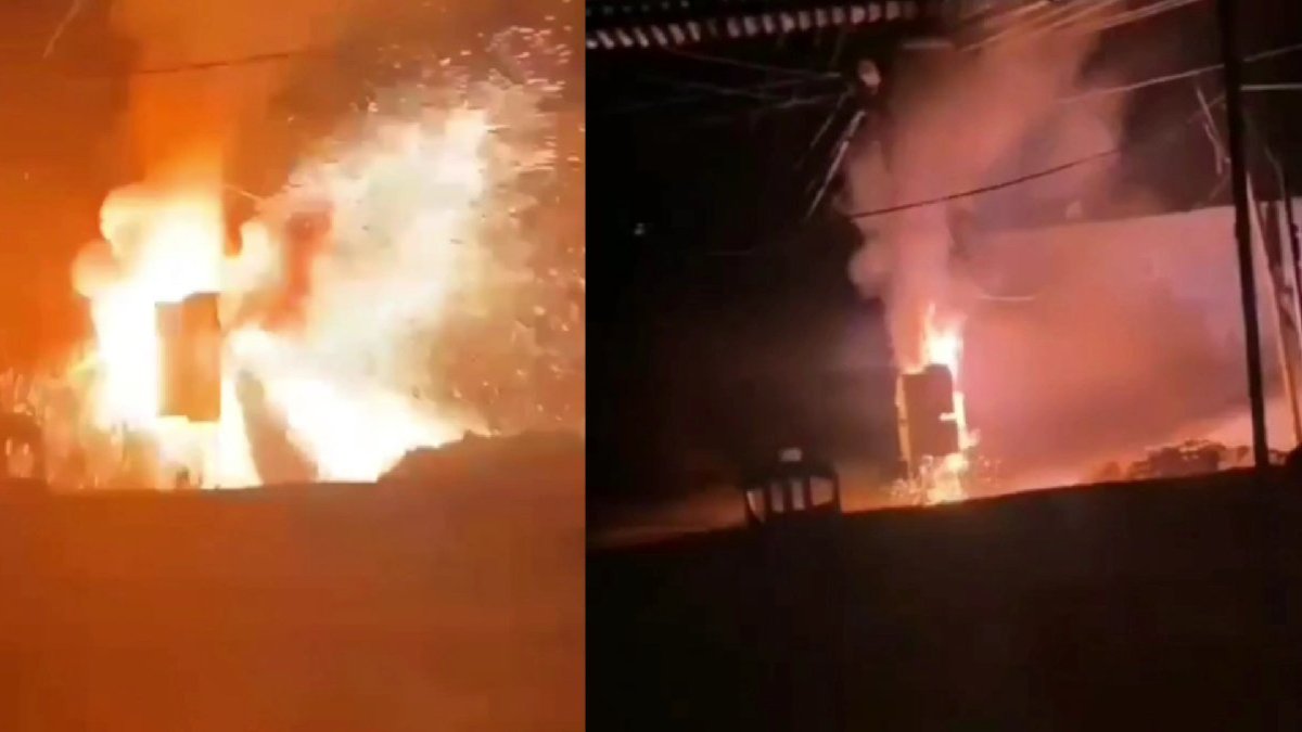 Geceyi aydınlatan patlamalar, mahallelide paniğe neden oldu. Bu anlar ise cep telefonu kamerasıyla kaydedildi.