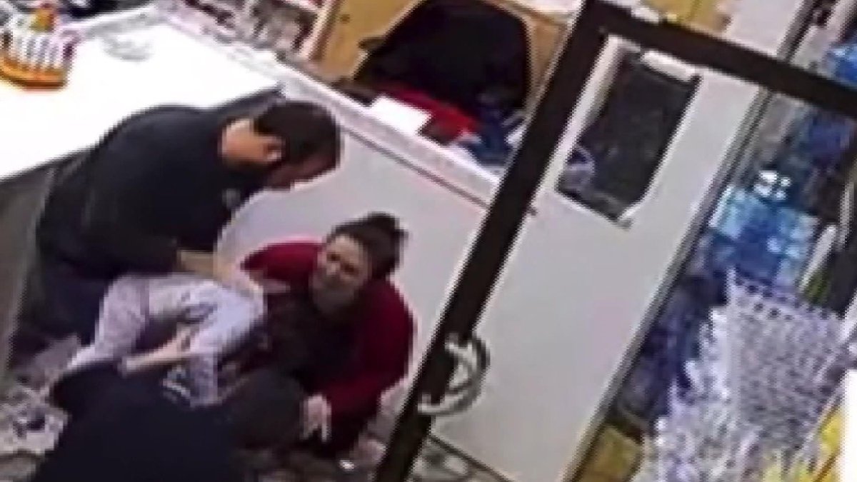 Annenin çocuğuyla eczaneye gelip eczacıdan yardım istemesi ve çocuğun 'Heimlich' manevrası ile hayata dönmesi saniye saniye güvenlik kameralarına yansıdı. (DHA)