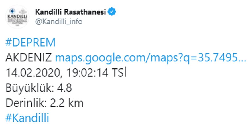 Kandilli Rasathanesi ise depremin yerin 2.2 kilometre derinliğinde ve 4.8 büyüklüğünde meydana geldiğini duyurdu.