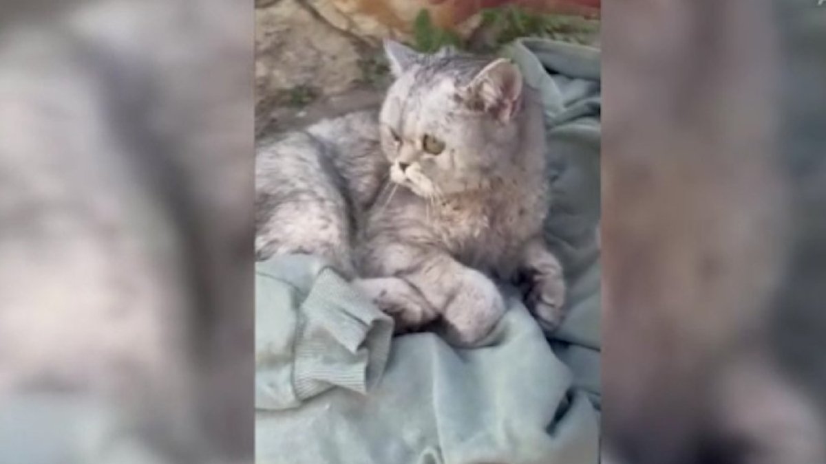 Bina sahibi Fahri Hatipoğlu da kediyi mutfak eşyalarını kurtarmaya çalıştıkları sırada fark ettiklerine dikkati çekerek, "Arkadaşlarla beraber el birliğiyle çıkarttık. Kediyi hemen sahibine ulaştırdık. Sahipleri de uzun zamandır burada bekliyorlardı." diye konuştu. Öte yandan kedinin enkazdan çıkarıldıktan sonraki anlar, cep telefonu kamerasıyla görüntülendi. (AA)