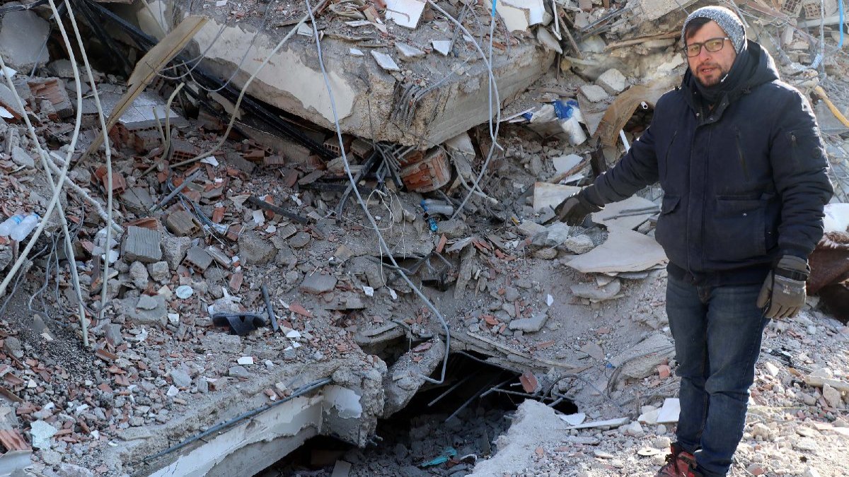 Özge Yılmaz ve Kadriye AltınoğluDeprem haberini aldıktan sonra Fransa'dan Elbistan'a gelen Özgür Yılmaz, yıkılan binanın önünde bekleyişini sürdürüyor. Yılmaz, hayatlarını kaybeden annesi ile kardeşinden geriye kalan hatıraların çıkarılmasını bekliyor.