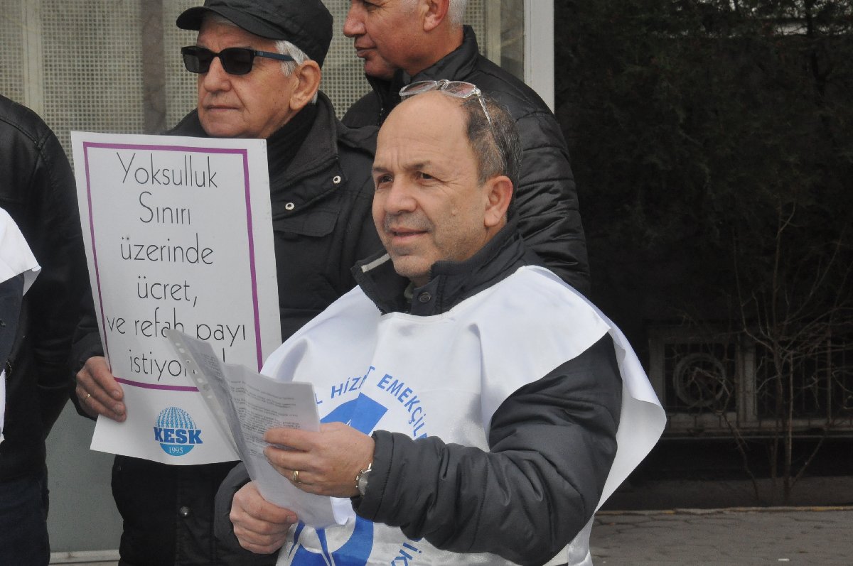 SES Eskişehir Şube Başkanı Birtürk Özkavak yaptığı açıklamada sağlık ve sosyal hizmet emekçileri emeklilerinin açlığa mahkum edildiğini öne sürerek, kamu emekçilerinin ve tüm emeklilerin maaşlarına en az asgari ücret artış oranı kadar zam yapılmasını talep etti.